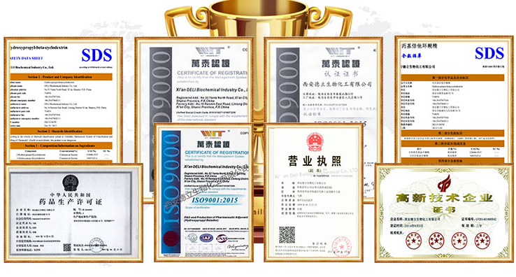 Xi'an Deli Biochemical Industry Co., Ltd. yra aukštųjų technologijų įmonė, kurios specializacija yra ciklodekstrinų ir jų darinių moksliniai tyrimai ir plėtra, gamyba ir pardavimas. Mes tiekiame farmacines pagalbines medžiagas klientams visame pasaulyje su stabilia kokybe ir patikimu aptarnavimu.